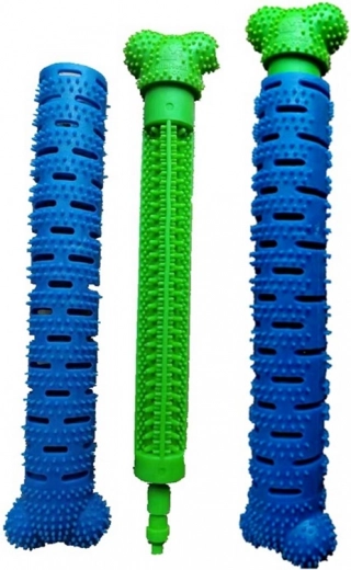 - Hornyokkal és résekkel ellátva, amelyek segítenek eltávolítani a felgyülemlett ételmaradékot, a lepedéket és a fogkövet. Külön rekesszel rendelkezik kutyafogkrém számára, amely rágás közben lassan felszabadul.