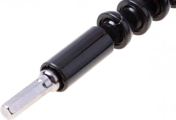 Tökéletes és rendkívül rugalmas bit-toldó! Nélkülözhetetlen kiegészítő a fúródhoz vagy csavarhúzódhoz, különösen olyan helyzetekben, amikor nehezen hozzáférhető helyen kell becsavarni. A rugókból és golyóscsapágygolyókból álló kialakításnak köszönhetően mindkét irányba, gyakorlatilag bármilyen szögben meghajlíthatod a toldót, és a csavarral oda jutsz, ahova csak szeretnéd.