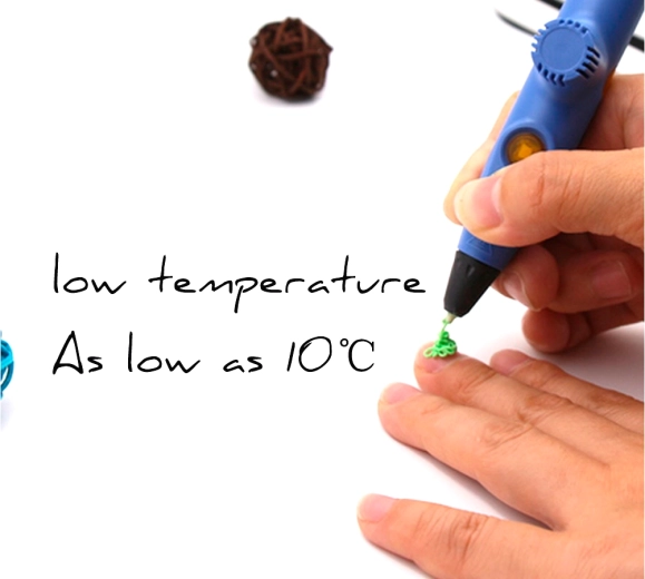 Rendkívül egyszerű, sőt intuitív használatú 3D nyomtató tollat kínálunk. Alacsony tömeggel és ergonomikus formával rendelkezik. Önnek és gyermekének rengeteg szórakozást nyújt, miközben fejleszti a kreativitást és a kézügyességet. Töltetként PCL filamentet használ – olyan anyagot, amely nagyon alacsony hőmérsékleten (50–60 °C) olvad, és nem bocsát ki mérgező vagy káros gőzöket. A toll praktikus USB-kábellel működik. Tollunk további vitathatatlan előnye a folyékony filament nagyon alacsony hőmérséklete, ezért különösen a kisgyermekek számára biztonságos.