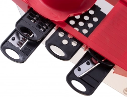 - Csúszásmentes fogantyú és alapzat biztosítják a stabilitást a szeletelés közben.