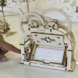 Fedezze fel a mechanika varázsát a UGEARS elegáns fa dobozával. Ez a mechanikus 3D modell ragasztó nélkül készül, és az oldalsó kar megnyomására automatikusan kinyílik, praktikus tárolóhellyé alakulva névjegykártyákhoz, gemkapcsokhoz vagy apró kincsekhez. A precíz kivitelezés, a finoman futó fogaskerekek és a szórakoztató összeszerelés a kezdőket és a műszaki rajongókat egyaránt lenyűgözi.