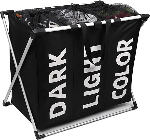 Hatékony megoldás minden otthonba, ahol a ruhák rendszerezésére törekednek. A hármas szennyeskosár három elkülönített rekeszt kínál, különböző színű ruhák számára: sötét, világos és színes. Az alumínium ötvözetből készült könnyű konstrukció miatt a kosár könnyen hordozható és tartós.