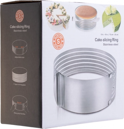 A gyűrű lehetővé teszi az átmérő beállítását 15 és 20 cm között, amely növeli a rugalmasságot különböző méretű torták használatánál.