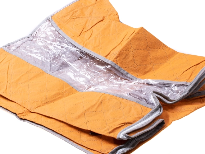 Praktikus, kompakt narancssárga huzat tárolódobozra – ideális szezonális ruhák, takarók, párnák és ágynemű tárolásához. A huzat véd a nedvességtől, portól, molyoktól és szennyeződésektől, miközben kényelmes tárolást tesz lehetővé a szekrényben vagy az ágy alatt.