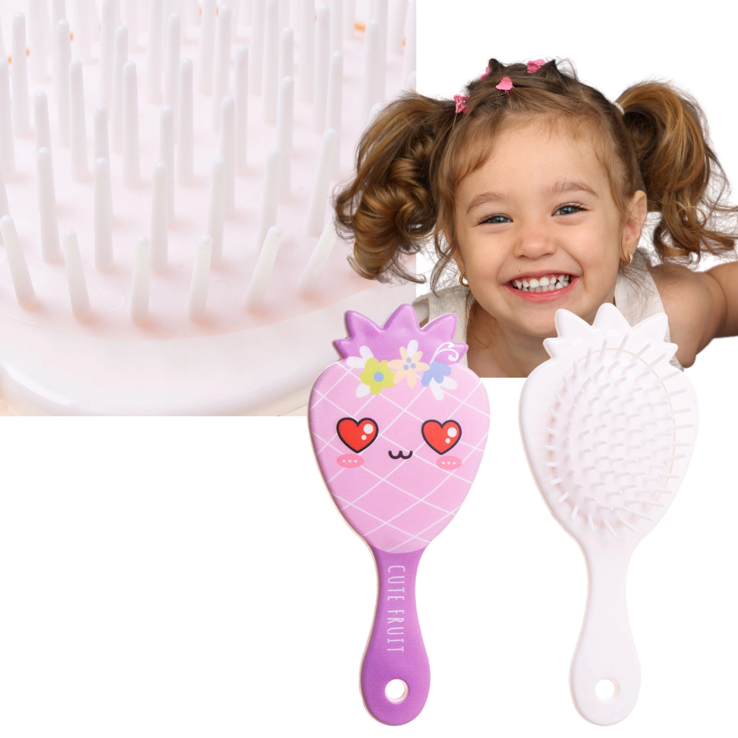 Gyengéd gyermek hajkefe ergonomikus, lila nyéllel a kíméletes fésüléshez. Simává teszi a hajat húzás nélkül és felesleges feltöltődés nélkül, miközben finoman masszírozza a fejbőrt.