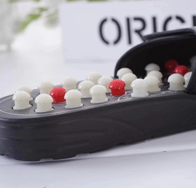 Az egészségügyi papucs Fakirki úgy lett tervezve, hogy serkentse a lábaid specifikus pontjait, amelyek a test bizonyos szerveinek felelnek meg. Csökkenti a terhelést a térdeken és védi azokat a túlterheléstől. 82 masszázspontot tartalmaz, amelyek stratégiailag az akupresszúrás pontok szerint vannak elhelyezve, és állítható tépőzáras pánttal rendelkeznek az optimális kényelem érdekében.