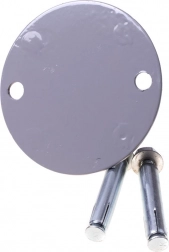 A rögzítőkészlet tartalmazza – kerek acéllemezt függesztékkel és acél táguló horgonyokat a rögzítéshez.