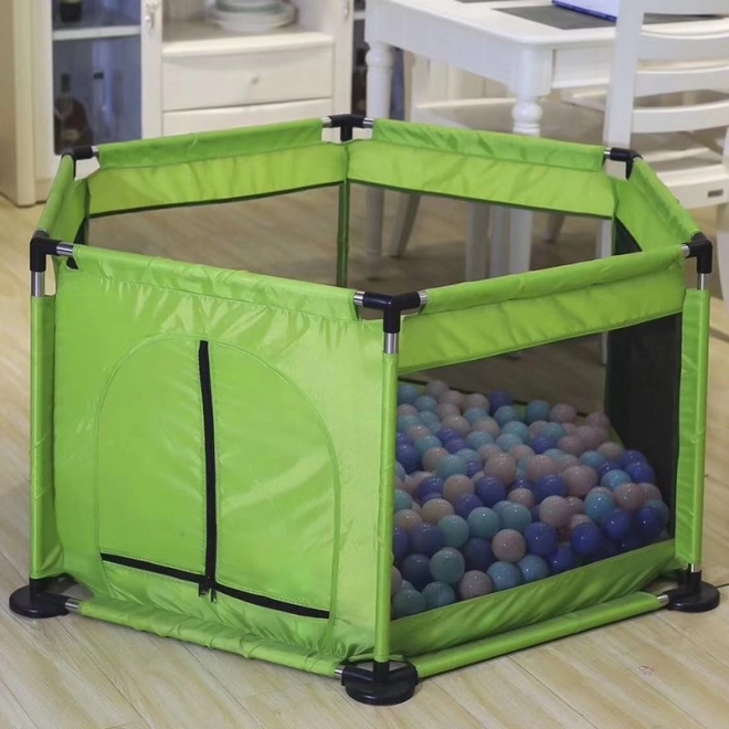 Biztonságos és szórakoztató helyet keresel gyermeked játékához? A nagy, zöld járóka olyan megoldás, amely lehetővé teszi számodra a pihenést, miközben a gyermek jól szórakozik. Tágas kialakításának köszönhetően bőséges helyet kínál a játékhoz, színes labdákkal pedig még vonzóbbá válik.
