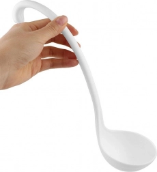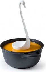 Vigyen egy kis eredetiséget és eleganciát a konyhába. A hattyú alakú, lebegő merőkanál hosszú, ergonomikusan ívelt nyelével és mély kanálrészével kényelmes merítést kínál. Okos kialakításának köszönhetően a tartón és közvetlenül az edényben is függőleges helyzetben marad, így nem koszolja össze a munkalapot vagy az asztalt.