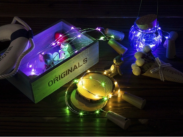 A dekoratív fényfüzér tökéletesen feldob bármilyen belső teret. Helyezze a füzért egy borosüvegbe vagy más edénybe, majd zárja le a dugóval. Így gyönyörű díszt hoz létre. A kellemes fény segíti a kikapcsolódást a hűvös, esős napokon és a hosszú őszi-téli estéken.