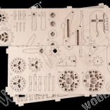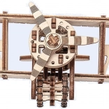 A készlet minőségi nyír rétegelt lemezből készül, és ragasztó vagy szerszám használata nélkül állítható össze. Az összeállított modell mérete kb. 16,1 x 14 x 8,8 cm. Remek ajándék repülőgép-rajongóknak, és garantáltan órákon át tartó szórakozást, valamint a mechanikus áttételek és fogaskerekek megismerését nyújtja.