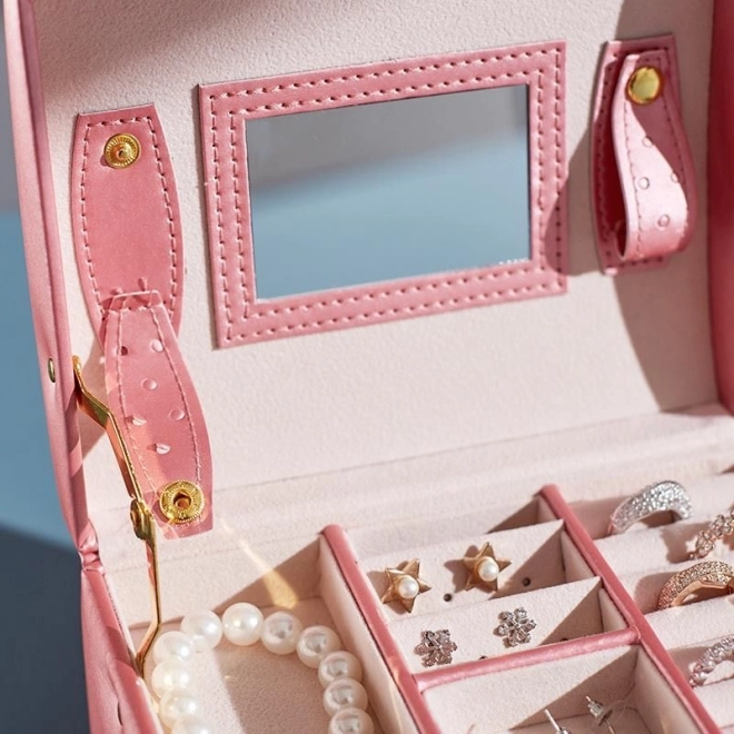 - Integrált tükör: nagy, kivehető tükör ékszerpróbához és sminkeléshez.