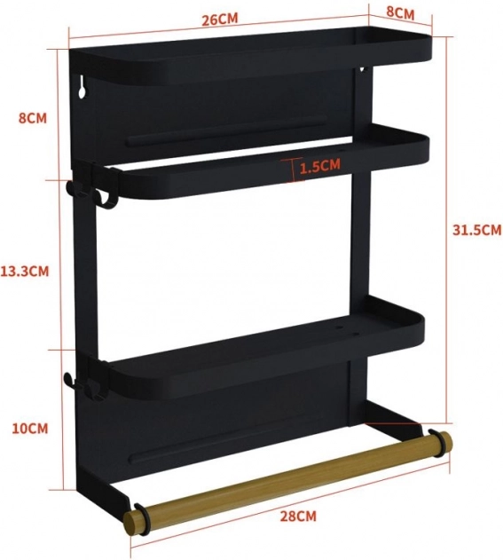 Praktikus, kétszintes mágneses rendszerező a kisebb konyhák rendben tartásához. Ideális fűszerek és konyhai eszközök tárolására, azonnali hozzáféréssel és extra hellyel. Az erős mágneseknek köszönhetően hűtőre szerelhető, amelyek még nagy terhelésnél is biztos tartást nyújtanak.