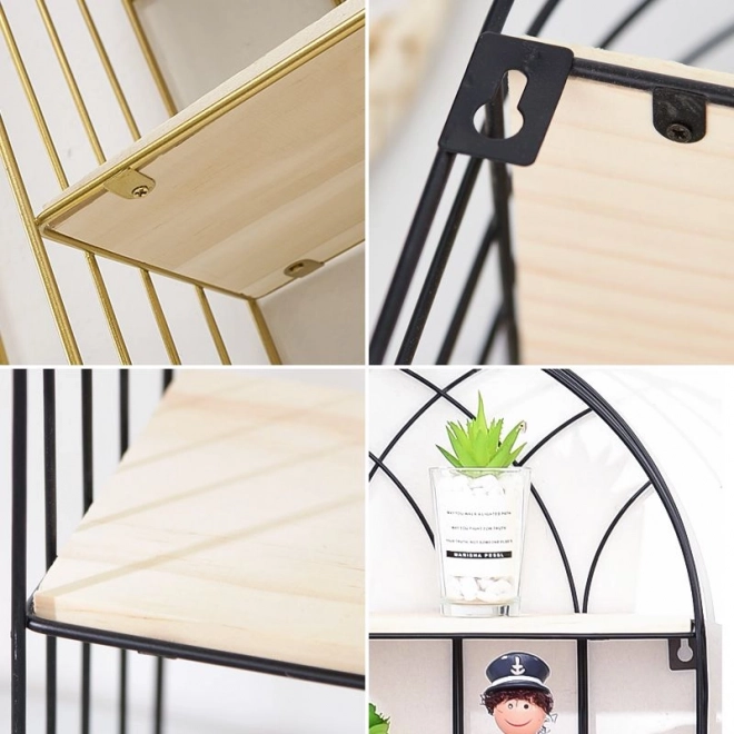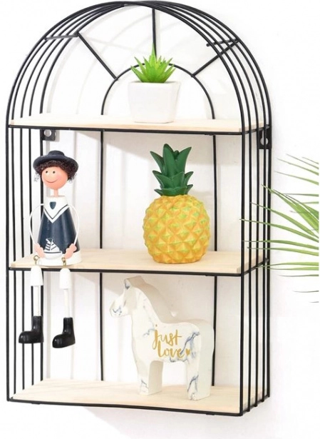 Ez a dekoratív fekete, drótszerkezetű polc ideális választás azoknak, akik a funkcionalitást elegáns megjelenéssel szeretnék kombinálni. Minimalista kivitele kiemeli otthona karakterét, és praktikus helyet biztosít kedvenc tárgyai számára.