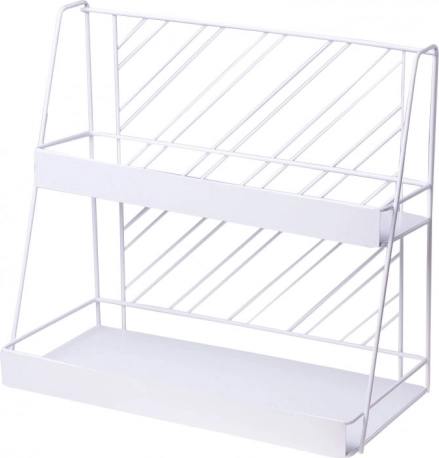 Ez a fém polc tökéletes megoldás a fürdőszoba vagy a hálószoba rendben tartására. A könyvespolc formájú huzalos polcok segítenek rendet tartani egy kis fürdőszobában vagy nagy mennyiségű kozmetikum között az öltözőasztalon.