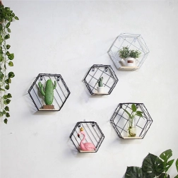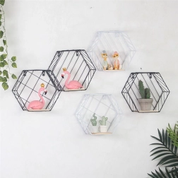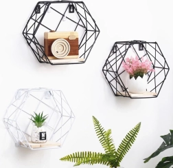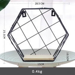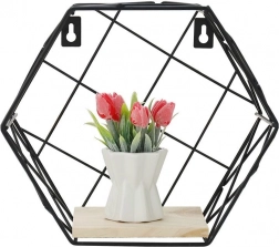 Hatszögletű dekoratív polc, LOFT stílus – fekete II