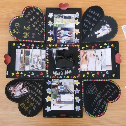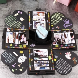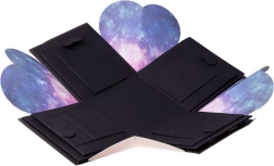 Az „exploding box” ajándékdoboz szinte bármilyen alkalomra és bárkinek rendkívüli ajándék. Ideális esküvőre, Valentin-napra, eljegyzésre, születésnapra, névnapra, nagymamának, nagypapának, édesanyának vagy édesapának. A legkisebb dobozba beteheted a megfelelő meglepetést, például gyűrűt, órát vagy ékszert. A belsejét díszítheted fényképekkel, jókívánságokkal és bármi mással, ami tetszik. Engedd szabadjára a művészi éned, és adj szívből jövő ajándékot.
