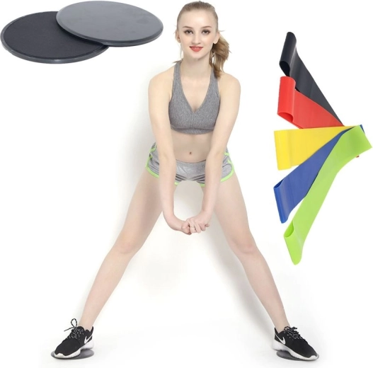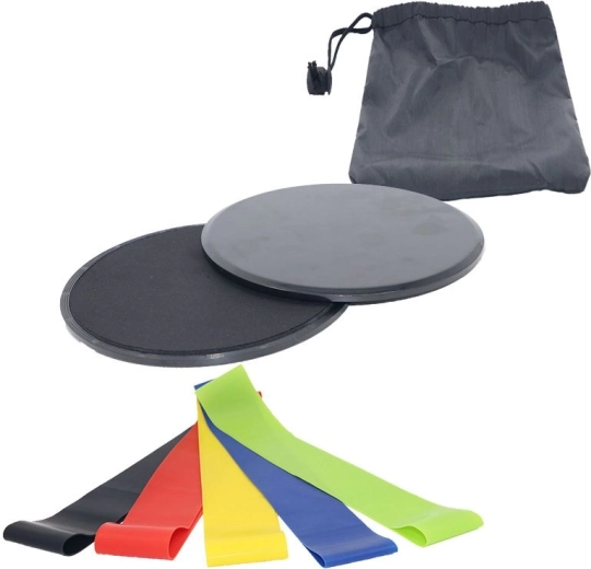Csúszókorongok + 5 db edzőgumi – fekete