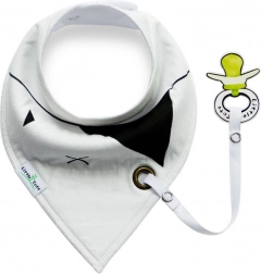 Gyermek kendő/előke cumitartó medállal – fehér