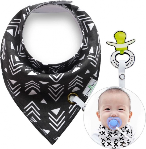 Elegáns kendő babáknak praktikus cumitartóval, amely nemcsak stílust, hanem funkcionalitást is kínál. Ideális nyálkendőként, amely megvédi a ruházatot a nedvességtől.
