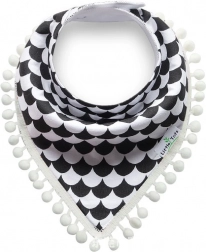 Gyermek sál pomponokkal – fehér-fekete mintás