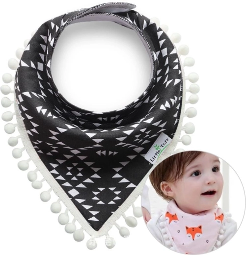 A bájos gyerek sál pomponokkal remek nyak-kiegészítő, amely kiválóan működik fogzási időszakban előkeként is. A kényelmes kapcsos zárás nem szorítja a gyermeket, és állítható szegély is rendelkezésre áll.