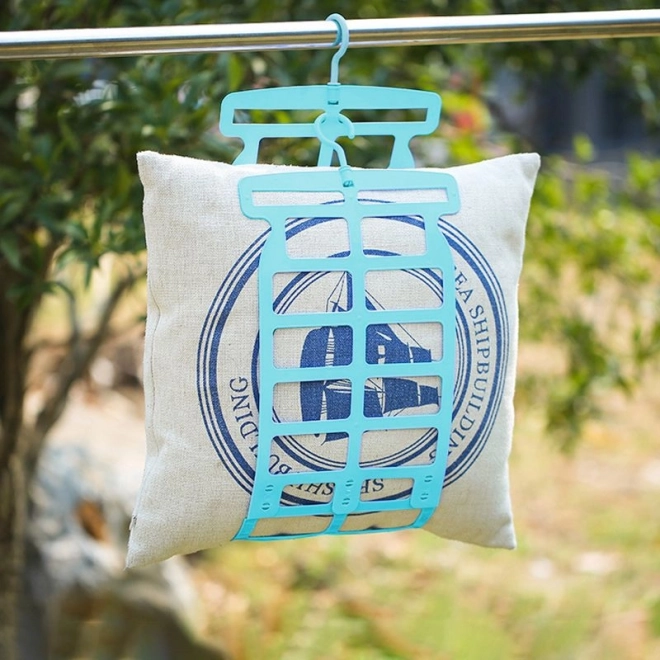 A multifunkcionális vállfa egy praktikus eszköz, amely párnák, plüss figurák, fehérnemű és más, szokatlan vagy nehezen felakasztható háztartási kiegészítők szárítására és szellőztetésére szolgál.