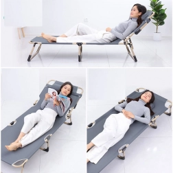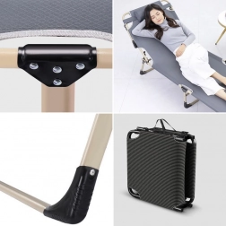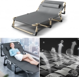 A 4 fokozatban állítható fejrész kényelmes olvasást, pihenést és alvást tesz lehetővé. A 8 csúszásgátló tappancsnak köszönhetően az ágy különböző padlófelületeken is stabil. Összecsukva kompakt méretű, így egyszerűen elfér a szekrényben, autóban vagy irodában.