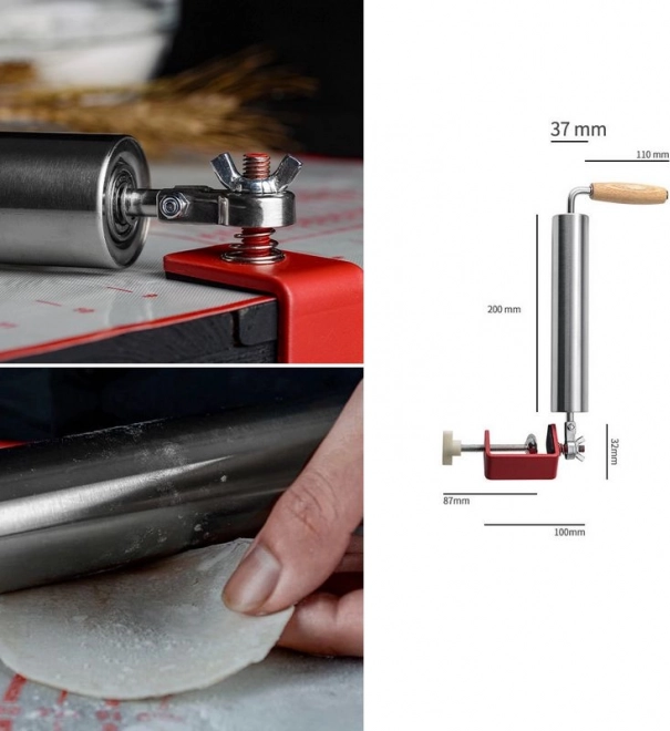 Kompakt kialakítása lehetővé teszi az asztal szélére való rögzítést, biztosítva, hogy a henger helyén maradjon, és egyenletes tésztanyújtást tegyen lehetővé.
