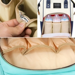 Az elülső zseb hőszigetelő betéttel optimális hőmérsékleten tartja a babás üvegeket, és biztonságosan a helyükön rögzíti őket.