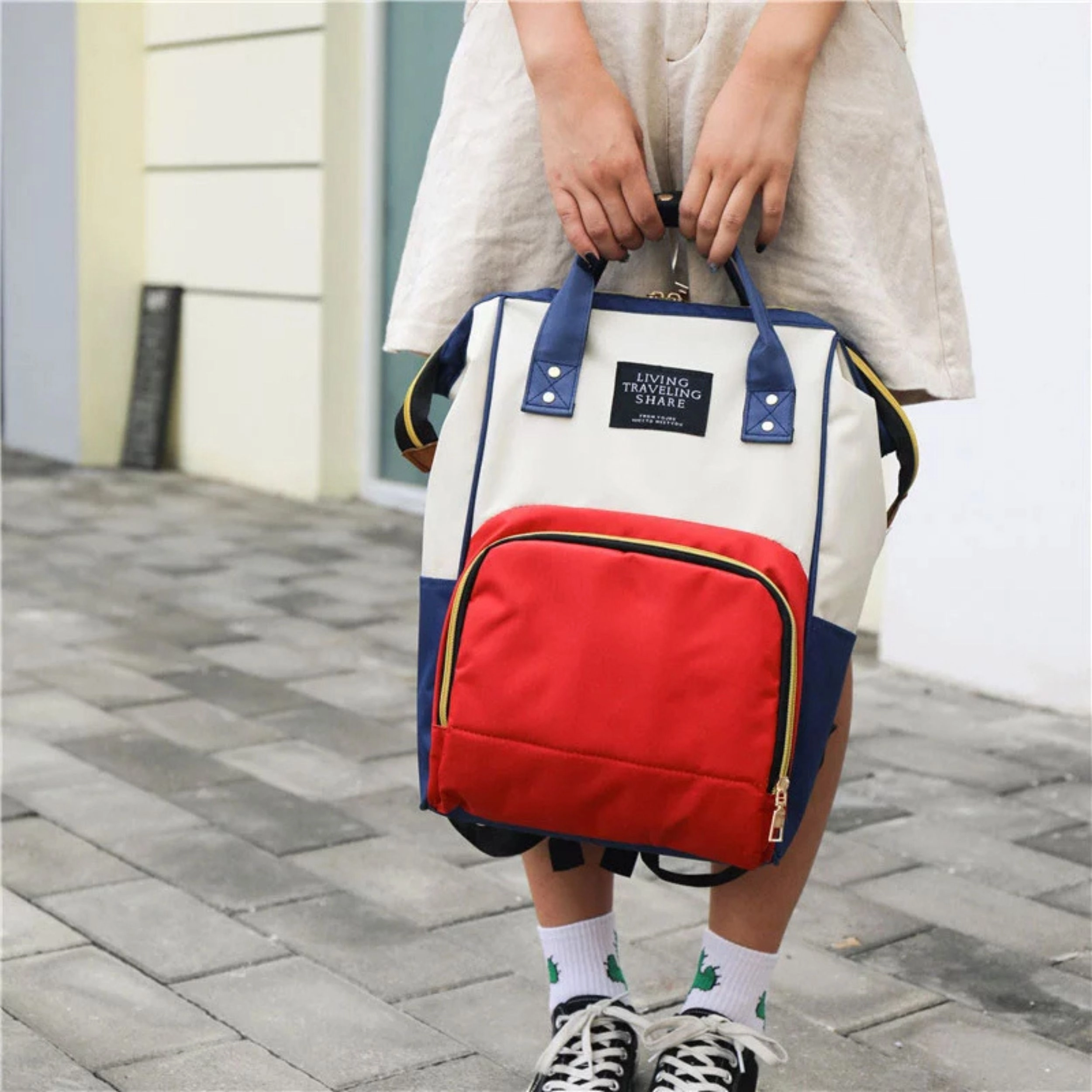Stílusos és praktikus hátizsák anyukáknak trikolór színekben, amely a mindennapokra kényelmet és rendszerezettséget kínál. Tartalmaz termosz zsebeket cumisüvegekhez, széles fő rekeszt számos zsebbel, oldalzsebeket a szükséges apróságoknak, valamint lehetőséget kézben, háton viselésre és babakocsira rögzítésre.