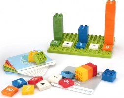Ez a készlet a szórakozást ötvözi a tanulással: a számos kockák és a kártyákon található feladatok segítségével a gyerekek megtanulnak számolni, mennyiségeket összehasonlítani és egyszerű egyenleteket alkotni. A színes elemek motiválnak az önálló játékra, és természetes módon fejlesztik a képzelőerőt és a térbeli érzékelést.