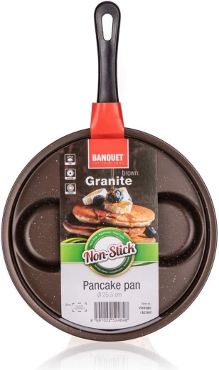 Ez a 4 adagos palacsintasütő elegáns barna színben a tartós szénacél testet pettyezett GRANITE tapadásmentes felülettel ötvözi, így a tészta nem tapad le, a kész palacsinták pedig könnyen kiemelhetők. A 24 cm-es átmérő ideális a mindennapi főzéshez és a kompakt tároláshoz.