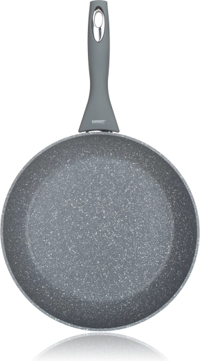 Tartós alumínium serpenyő Granite Grey bevonattal a mindennapi főzéshez. Tapadásmentes, karcálló felületet, gyors és egyenletes hőelosztást, valamint kényelmes soft-touch fogantyút kínál. Minden tűzhelytípushoz, beleértve az indukciót is.