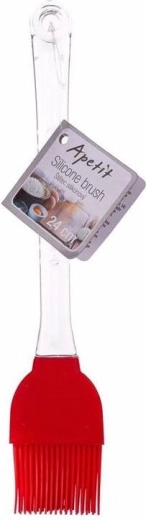 Az APETIT márkájú szilikon konyhai kenőecset nélkülözhetetlen eszköz minden modern konyhában. Lapos szilikon ecsetfeje és átlátszó műanyag nyele biztonságos és kényelmes használatot garantál. Kiválóan alkalmas különféle konyhai feladatokra, például péksütemények megkenésére vagy húsok pácolására, köszönhetően a magas hőmérsékletnek ellenálló anyagoknak.