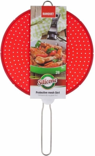 Bemutatjuk a CULINARIA szilikon fröccsenésgátlót serpenyőkhöz, amely ideális választás minden konyhába. Perforált kialakítása hatékonyan megakadályozza az olaj fröccsenését, miközben lehetővé teszi a gőz távozását, így főzés közben tisztaságot és biztonságot nyújt. A szűrő fém nyéllel van ellátva a könnyű kezelhetőség érdekében.