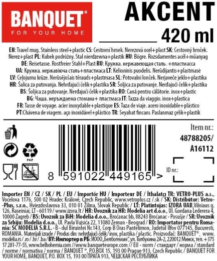 A stílusos AKCENT utazó termoszbögre 420 ml űrtartalommal hosszabb ideig megőrzi italai meleg vagy hideg hőmérsékletét. Kétrétegű kialakítást kínál, minőségi rozsdamentes acélból, valamint praktikus szilikon hüvellyel a biztonságos és kényelmes fogásért. Elegáns antracitszürke színével remekül illik a mindennapok ritmusához otthon, irodában és útközben is.