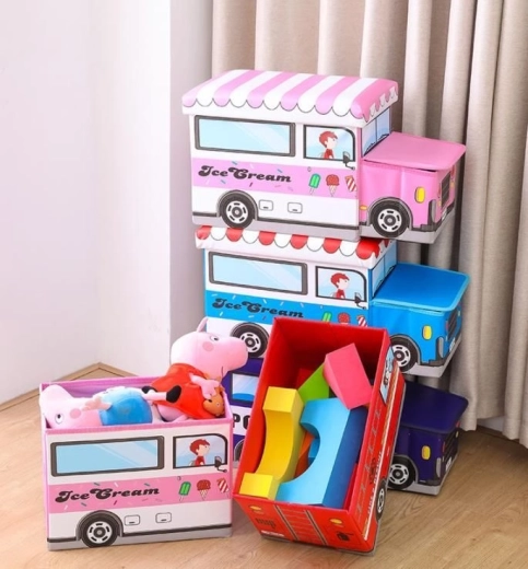 Játék tároló puffal – ez egy multifunkcionális és praktikus termék, amely remekül illik a gyerekszobába. Játék tároló puffal – fagylaltos kisautó. A doboz ideális játékok, építőkockák, könyvek stb. tárolására. Elfér benne a gyermek összes játéka, és értékes helyet takarít meg. A játékdoboz két rekesszel rendelkezik, amelyek lehetővé teszik a játékok szétválasztását. Ennek a felosztásnak köszönhetően a gyerekszobában mindig rend lesz. A játékszervező tetején fedél található, amely kényelmes és gyors hozzáférést biztosít a belül tárolt tárgyakhoz. Ezenkívül a játékszervező használható praktikus asztalként, kényelmes lábtartóként vagy extra ülőhelyként váratlan vendégek számára. Egyszerűsége és praktikuma mellett a termék rendkívül dekoratív.