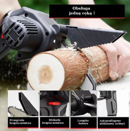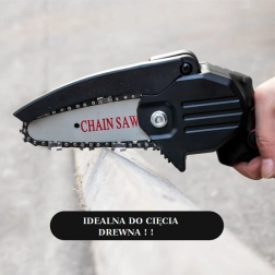 Erős, újratölthető akkumulátoros fűrész a gyors és egyszerű használatért. Ideális fák, ágak, bokrok metszéséhez, valamint általános kerti munkákhoz. A mini láncfűrész bármikor, bármilyen körülmények között használható. A fűrész kiváló minőségű lánccal van felszerelve, amely gyors vágásra képes. A láncfűrész egy kézzel szabadon irányítható, ami teljes mozgásszabadságot biztosít, így kényelmesen és hatékonyan dolgozhat.