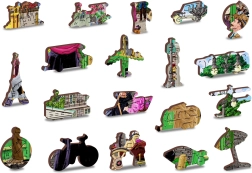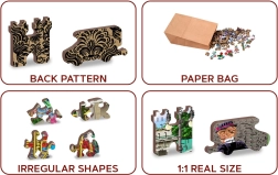 Ne hagyd ki a lehetőséget, hogy felfedezd a WOODEN CITY puzzle különleges formájú darabkáinak szépségét. Minden darabka lézerrel van vágott, és néhány állatok, épületek vagy tárgyak formájában, amelyek növelik a végeredmény esztétikai értékét. A puzzle kétoldalas, így összeállítható fénykép alapján vagy a hátoldalon lévő mintázat szerint is.