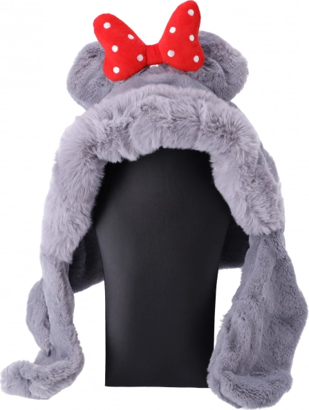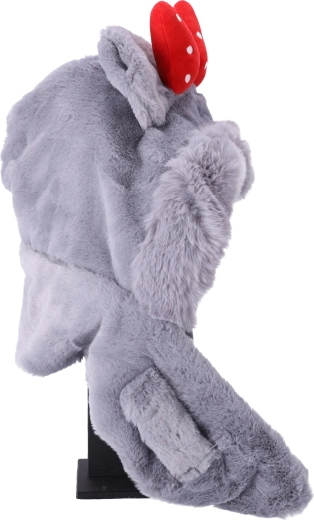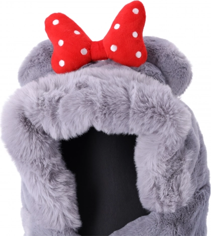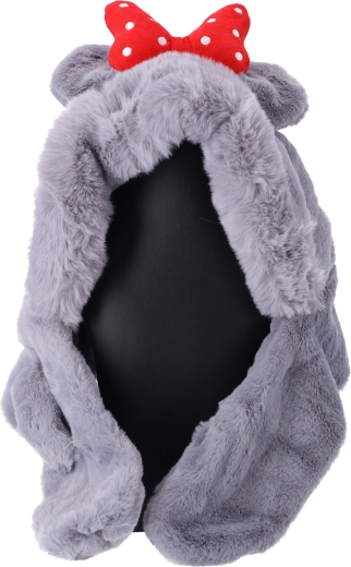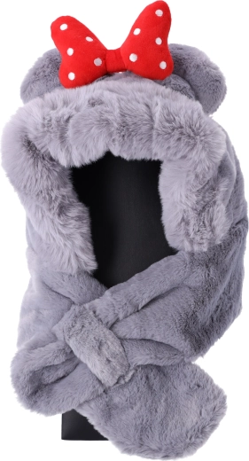 Gyerek plüss sálas sapka 1–8 éves gyerekeknek – szürke piros masnival