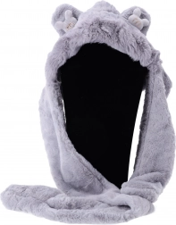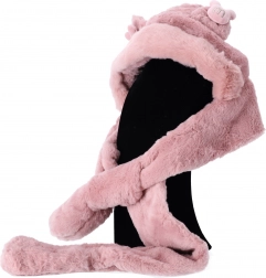 Aranyos és praktikus, 3 az 1-ben gyerek sapka, amely kapucnit, sálat és kesztyűt egyesít. A puha plüss anyag melegen tartja a gyerekeket téli séták során, sízés és korcsolyázás közben is. Ideális 2–12 éves lányoknak.