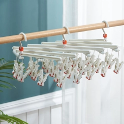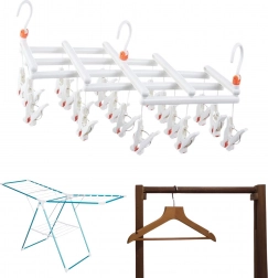 Műanyag összecsukható ruhaszárító vállfa csipeszekkel – 19 csipesz – fehér
