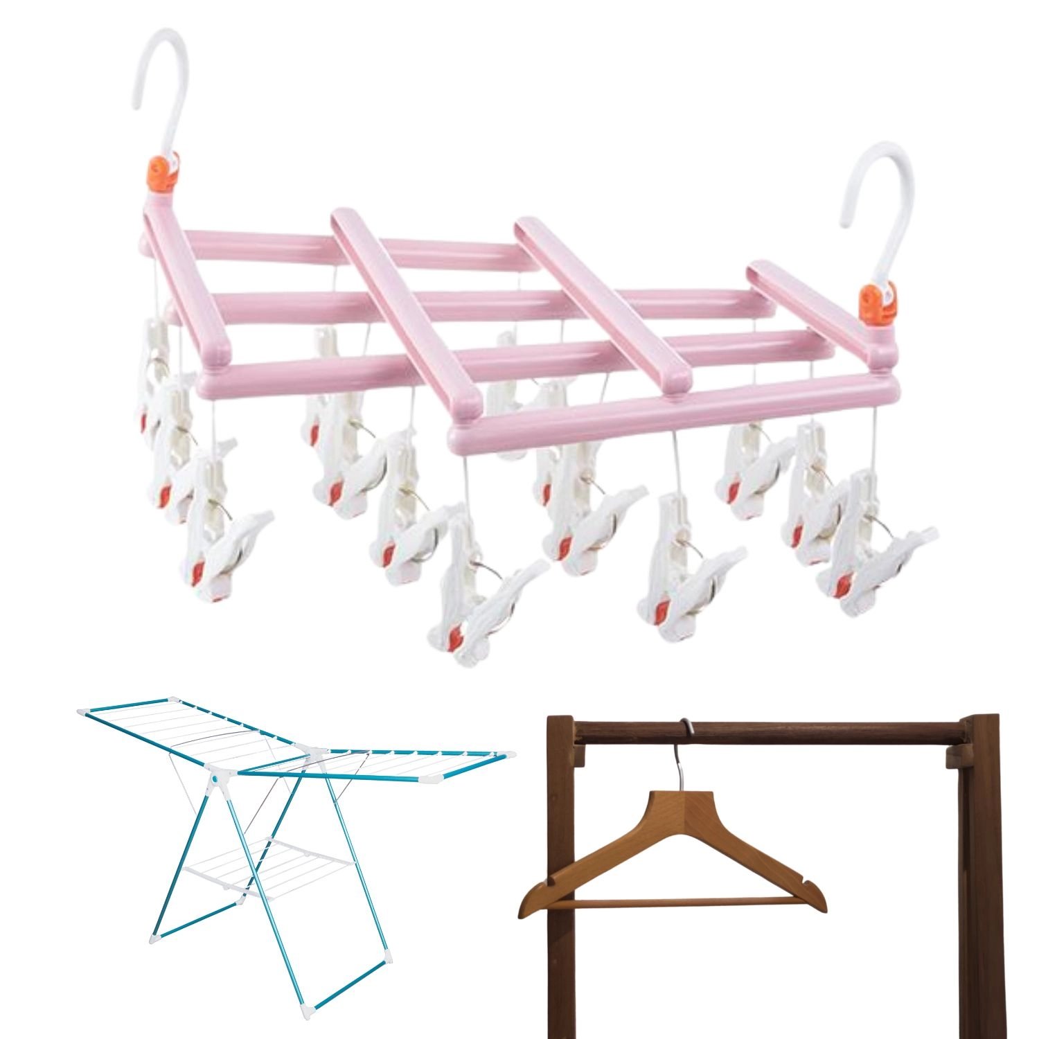 Tartson rendet a ruhaszárítás során, és használjon ki minden centimétert. Ez a rózsaszín szárító 14 erős csipesszel gyors és átlátható felakasztást kínál a kisebb ruhadarabokhoz. A forgó horog megkönnyíti a felakasztást rúdra, kötélre, erkélyre vagy ruhaszárítóra, az összecsukható kialakítás pedig egyszerű tárolást és hordozhatóságot biztosít.