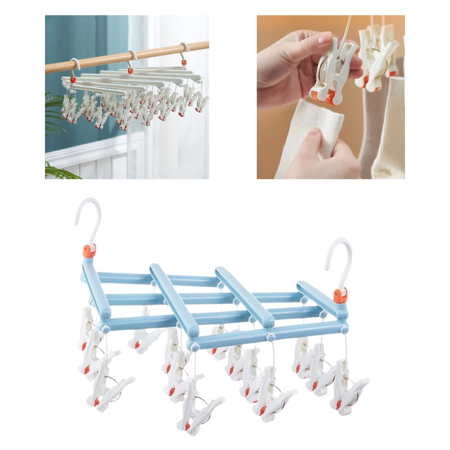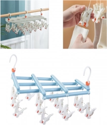 Praktikus, összecsukható szárító 14 klipszszel, tartós műanyagból, amely gyors és kíméletes szárítást biztosít a kisebb ruhadaraboknak otthon és a szabadban is. A forgatható akasztónak és a kompakt méreteknek köszönhetően bárhová könnyen felakasztható, használat után pedig helytakarékos. A csúszásmentes klipszek biztonságosan tartják a zoknikat, fehérneműt és a gyerekruhákat.