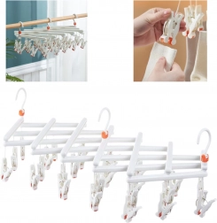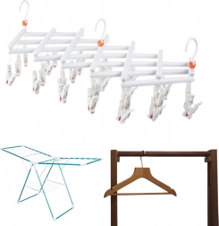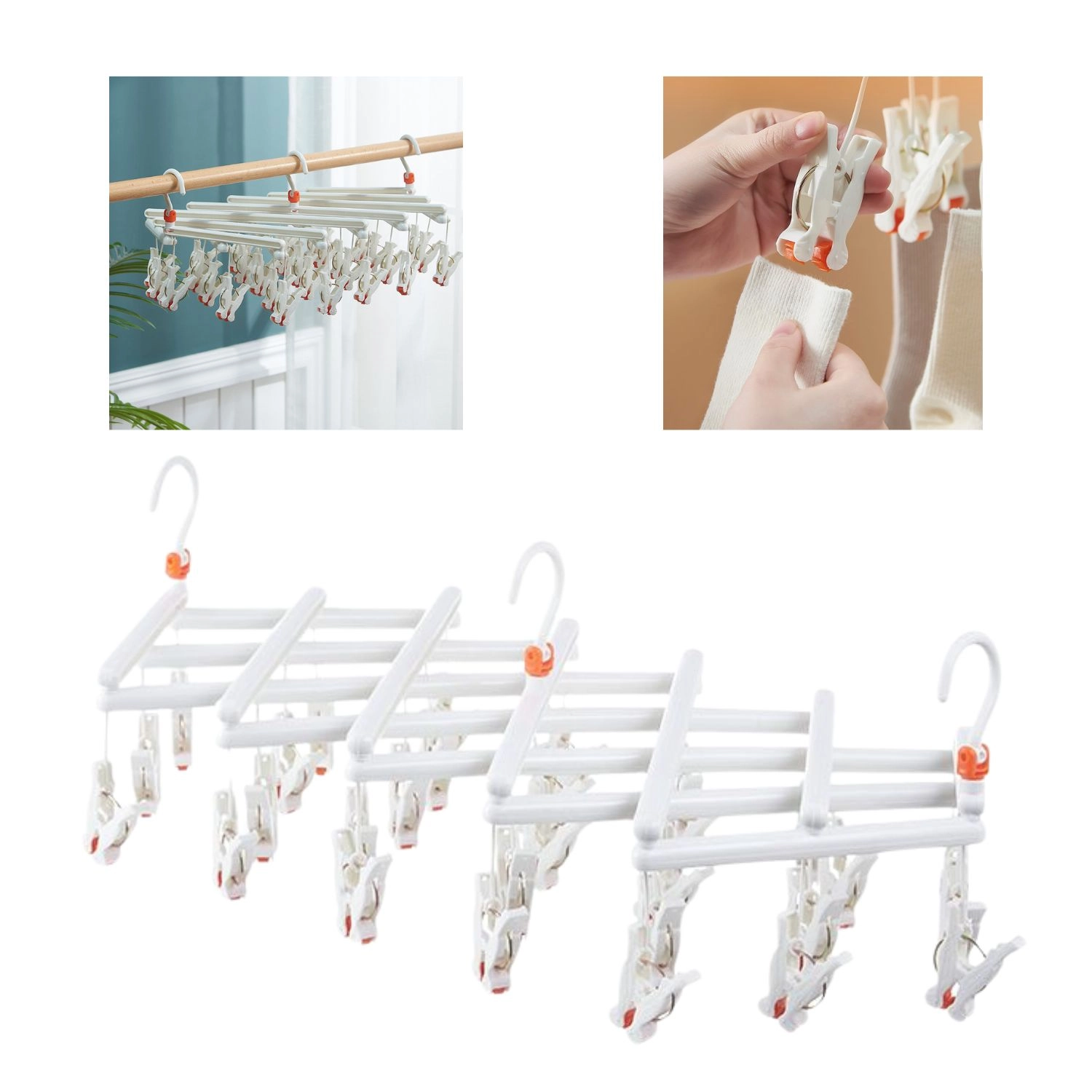 Praktikus, összecsukható szárító 29 klipszszel, ideális zoknik, alsóneműk és kisebb ruhadarabok szárításához otthon és a szabadban. A forgatható horognak, a kompakt méreteknek és a strapabíró műanyagnak köszönhetően helytakarékos, megkönnyíti a rendszerezést, és biztonságos tartást biztosít csúszás nélkül.