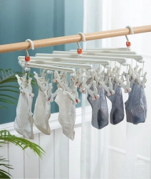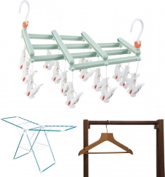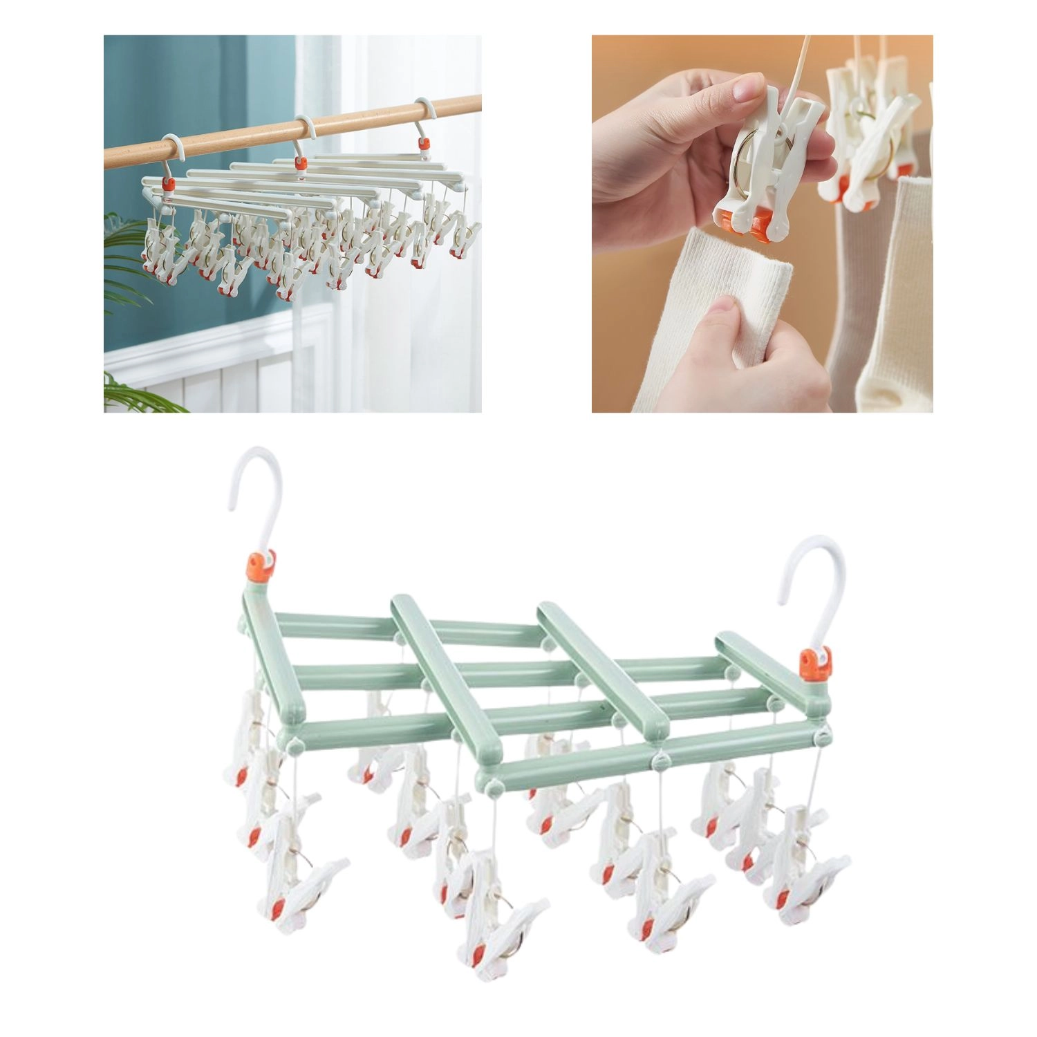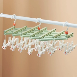 Praktikus és tartós, 14 csipesszel ellátott összecsukható vállfa, amely helyet takarít meg és gyors szárítást biztosít a kisebb ruhadaraboknak. Ideális zoknikhoz, fehérneműhöz és kiegészítőkhöz, dupla kampóval a stabil felakasztáshoz. Kínál összecsukható kialakítást, zárható, forgatható kampót és ergonomikus csipeszeket a biztos rögzítéshez.