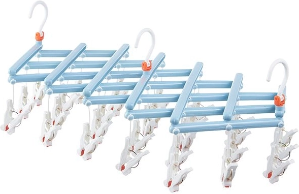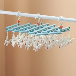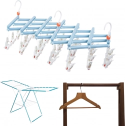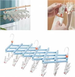 Praktikus, összecsukható ruhaszárító 29 klipszszel, ideális zoknikhoz, fehérneműhöz és apró darabokhoz. Könnyű, tartós műanyag szerkezet, forgatható, reteszelhető akasztóval, a kompakt összecsukás pedig helyet takarít meg otthon, az erkélyen vagy utazáskor.