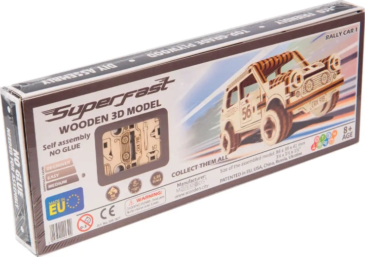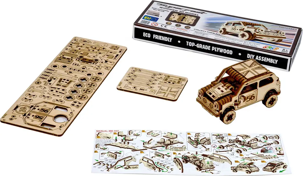 Ez a mechanikus 3D rallye autó modell tökéletes választás minden alkotni szerető számára. A nyír rétegelt lemezből készült, precíz lézervágásnak köszönhetően az elemek könnyedén illeszkednek, így kellemes kikapcsolódást és kreativitásfejlesztést nyújt a ragasztó nélküli építés során. A kész modell realisztikus részleteivel – a hűtőrácstól az ajtón lévő számozásig – stílusos dísze lesz polcnak vagy dolgozószobának.