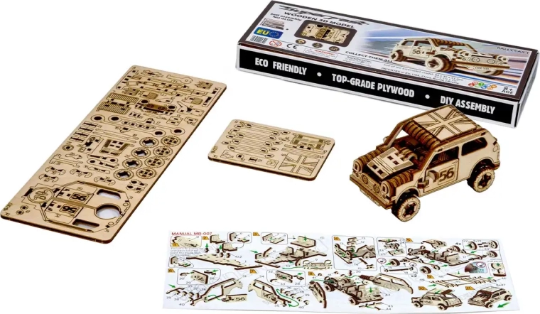 A készlet 98 darabból áll, és körülbelül 40 perc alatt összeállítható. A nehézségi szint könnyű, így kiváló belépő a fa építőkészletek világába, illetve kellemes közös családi esti projekt. A kompakt méretek (84 × 39 × 41 mm) szinte bárhol elhelyezhetők.